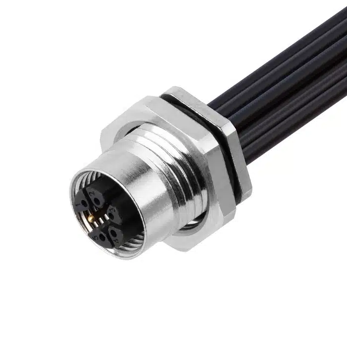 M12 M code Femelle Montage arrière sur panneau Connecteur Contacts à souder
